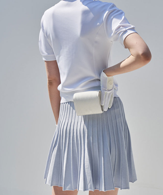 Knit skirt made of breathable, cool-feeling yarn With a sense of length that is not burdensome Flare design that can be coordinated with one piece. It is a strong type yarn made by giving elastic twist. It is a soft-touch knit skirt that minimizes skin friction. Special sewing with high difficulty to attach knitwear and functional leggings With underpants attached, comfortable and complete Experience Anelman's Golf Knit Skirt. Firmly holds the waist 50mm wide high elasticity inner band Fully recessed, it sits comfortably on your back.
